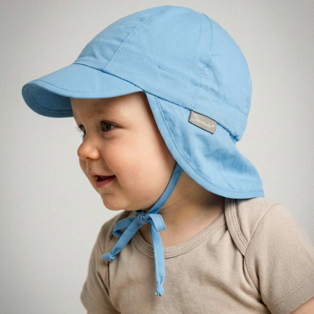 Die unifarbene Baby Schirmmütze aus feinfädigem Baumwoll-Popeline (Bio) mit UV-Schutz 50+ ist ein Sommer Klassiker und vielseitig mit modischen Outfits zu kombinieren. Auch bei hohen Temperaturen sorgt das leichte Material für ein angenehmes Tragegefühl. Der verlängerte Nackenbereich bedeckt den empfindlichen Nacken optimal vor intensiver Sonneneinstrahlung. Die Bindebänder der Schirmmütze geben Halt und verhindern ein Verrutschen. Mit den Ohrenklappen ist ein zusätzlicher Schutz